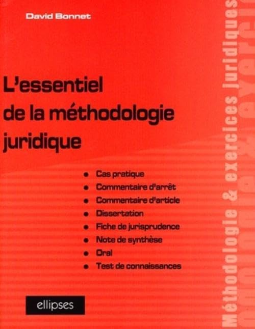 L'essentiel de la méthodologie juridique : cas pratique ; commentaire d'arret ; commentaire d'article ; dissertation ; fiche de jurisprudence ; note de syntháese ; oral ; test de connaissances / David Bonnet. by Series: Methodologie et exercices juridiques