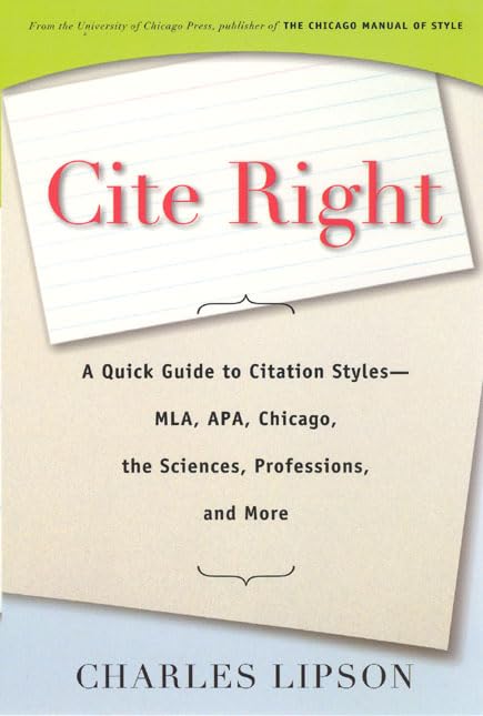 Cite right : a quick guide to citation styles--MLA, APA, Chicago, the sciences, professions, and more / Charles Lipson. by Series: Chicago guides to writing, editing, and publishing